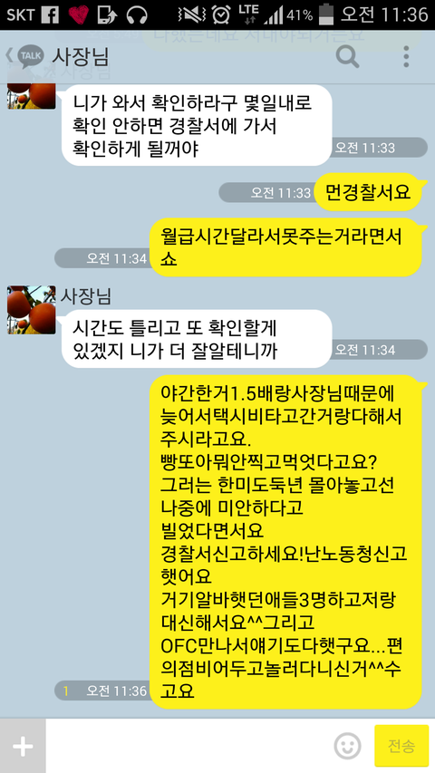 그러던 어느날 저가 사정이생겨서 일을 하다가 집에가야했었는데 사장한테 전화를 했더니 받질않더라고요