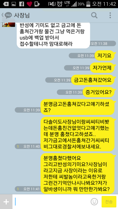 저는화나서 명예회손으로 신고한다햇더니 훔쳣다고한적이 없답니다 그래놓고 저는 또 기다렸는데도 연락이안오더라고요 주위애들한테 그 사장 돈잘안주냐니까