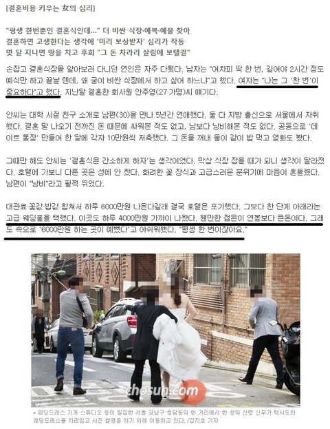 평생한번밖에 없는 결혼식에 펑펑 쓰자는 김x년 마인드 ㅍㅌㅊ?