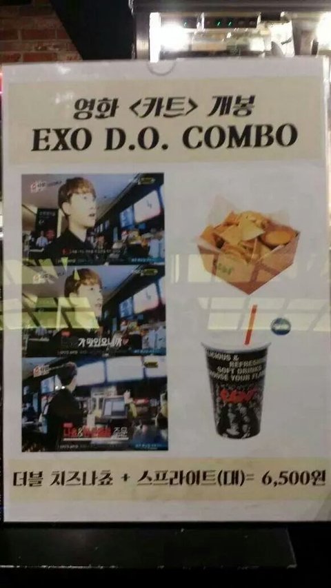이렇게있는데 기대하고갔더니 여긴 좀 지방이라서없는거야 ㄱ모르는구나...했지 모두가알다시피하는 카트와 디오콤보인데.. .어쨋든 옆에있는 판매기에서 표도 자동판매기로사고 시간보니까 시간임박해서 디오콤보사러가니까 돈이별로없는거야..용돈용돈ㅇᆢㅡㅇ돈....개봉으로부터 얼마나 꿈꿔온 3일동안의 인내와 기대와 설렘이 한순간 물밀듯밀려나는 기분까진아니고 그냥 좀 많이 내 지갑에게 실망했는데 시간은없고 돈도없고 아쉬ㅂ지만 나쵸만먹기러하고 치즈소스정돈 계획하던대로 두개주세요하고 기다리려고 뒤로 나가려니까 직원분이 "스프라이트도 드릴까요?"하는거야 근데 아무런 의심과 아무런 망설임없이 뻥안치고 물흐르듯 네~ㅋㅋㅋㅋ진짜 다시생각해도 0.1초도 망설임이없었다 디오콤보는 cgv에서 유명하나봥 다들 아나봥 어쨋든 맛있고 도경수는 항상 옳다:)♡ 할라피뇨치즈소~~스 치즈소~~~스