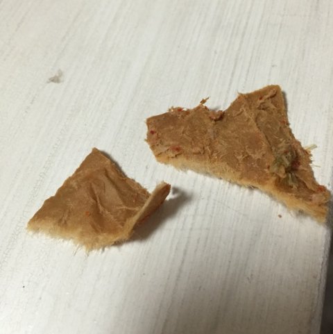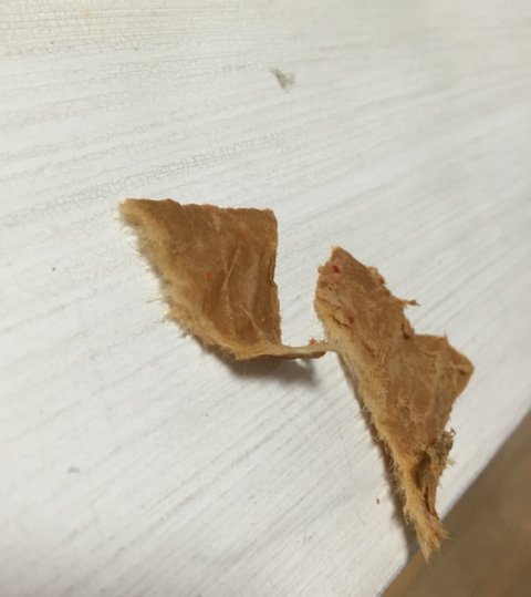 2번정도 접혀서 말린 후에 참치가 붙어있었어요.