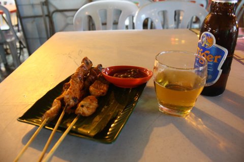 사테라고 불리는 말레이시아의 전통 꼬치(닭고기,소고기, 돼지고기 다양한 종류가 있어요)와 맥주한잔이면 두말할거 없어요 ! 굿한방 빠샤