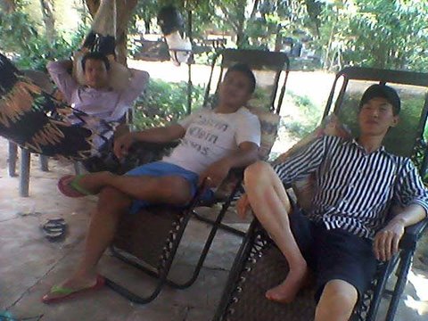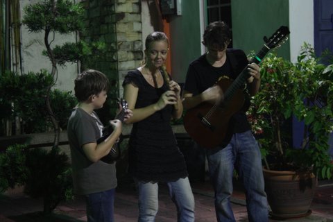 밤엔 맥주와 함께 태국인 음악선생인 언(aon)이 기타를 치고 모두 함께 노래를 부르고 ....