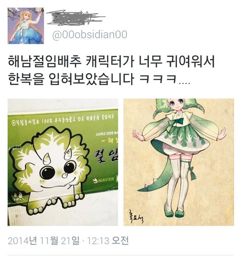 귀여운 배추캐릭터와 모에캐릭터...
