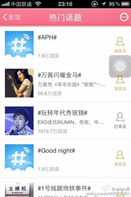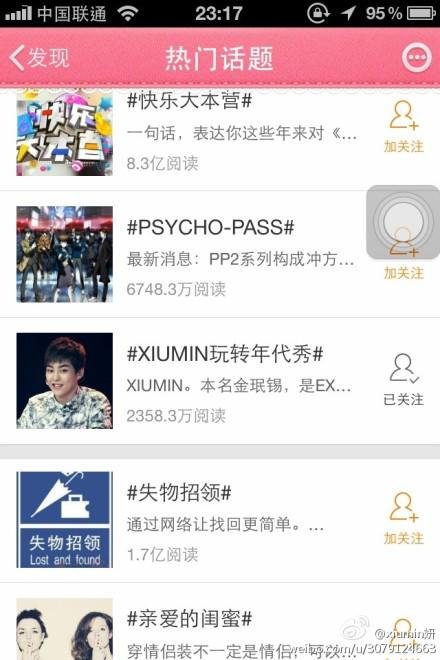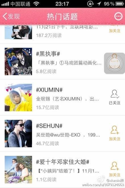 시우민연대수방송후 웨이보 핫토픽에~