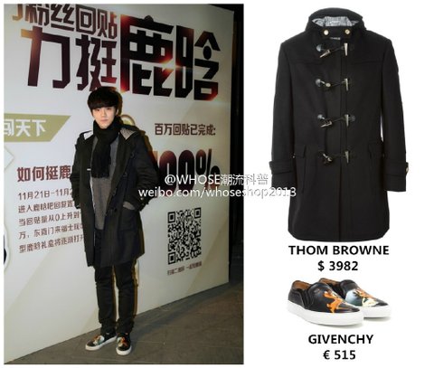 코트 예쁘다 생각했는데 톰브라운꺼구나.. 신발은 루한이 자주신는 지방시밤비신발