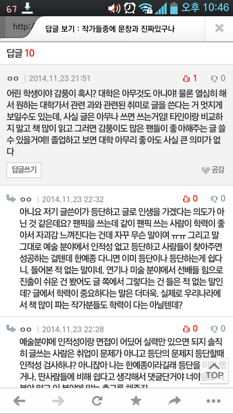 감풍아.너 저격해서 미안한데, 그렇게 현실 탓 하고싶다면 픽톡에서 나가주는건 어떨까?픽이라는게 작가들 망상에서 비롯된 거기도 하고 픽톡에서 괜히 시비틀 시간에 니 미래를 위해 하나라도 더 준비하는게 좋지 않을까 싶다.