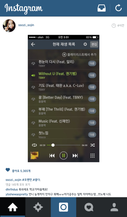 소진은 왜 인스타 음악리스트지웠을까??