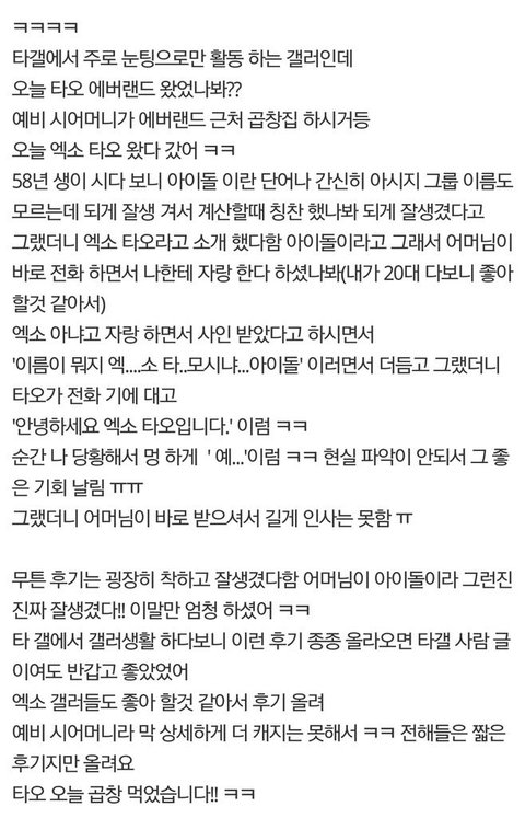에버랜드 옆에서 곱창먹은 타오 ㅋㅋㅋ