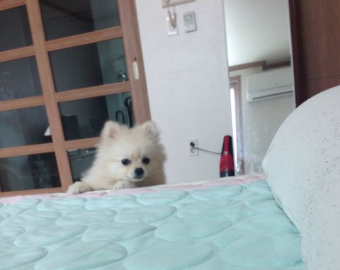 밥달라고 침대를 팡팡 치는데,