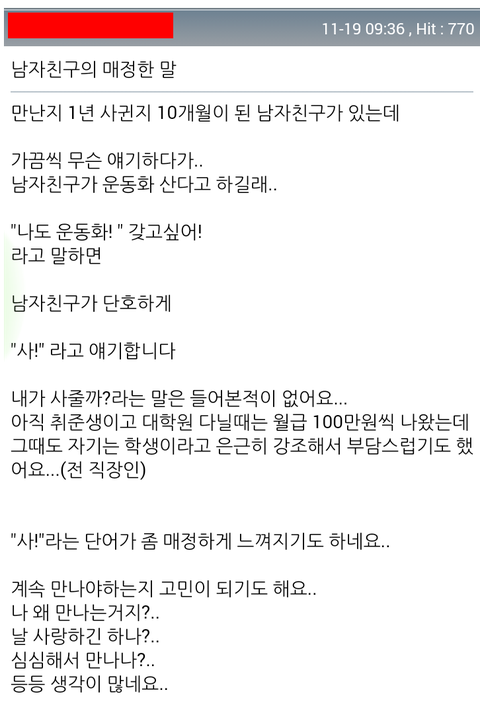 "사!"라는 단어가 매정하다는 처자