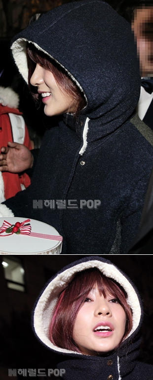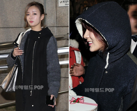 특히 윤보미는 추운지 따뜻한 에이치커넥트 코트 입고