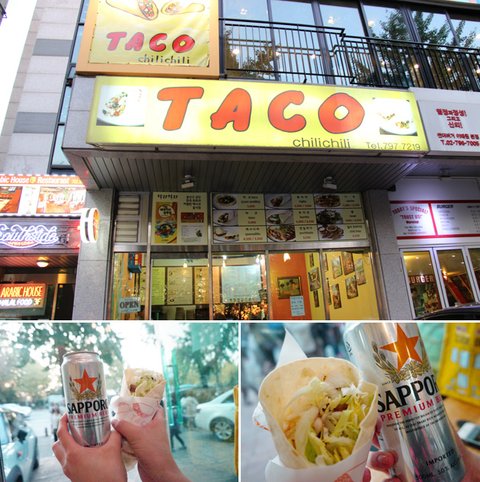 두번째 길거리 간식으로는 타코를 먹었습니다. 경리단길에 이국적인 음식점이 많이 있다고 들었는데요~ 듣던대로였습니다! 씩씩하게 걸어다니기 위해서 길거리에서 가볍게 먹을 수 있는 타코를 선택했습니다!