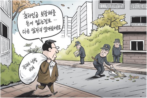 월급 오르는 게 두려운 사람들…"커피 한 잔 값이면 경비원 일자리 지킬 수 있어"