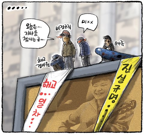 ‘투명인간’ 경비노동자, 쪽잠자며 근무했더니 ‘해고’ ...