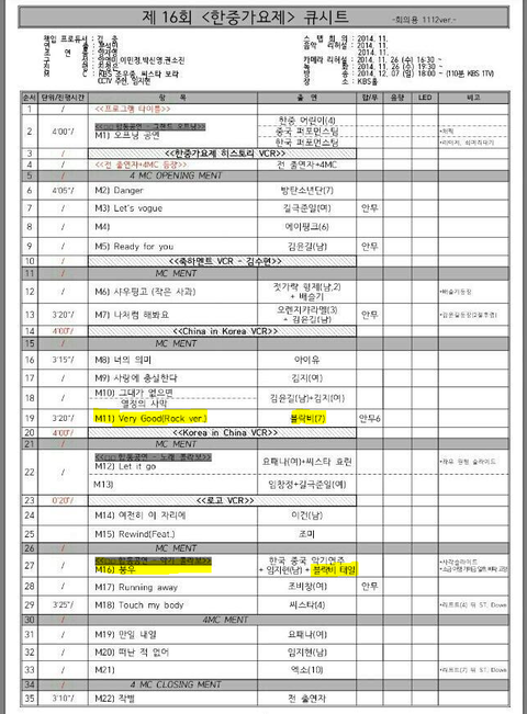 한중가요제 큐시트