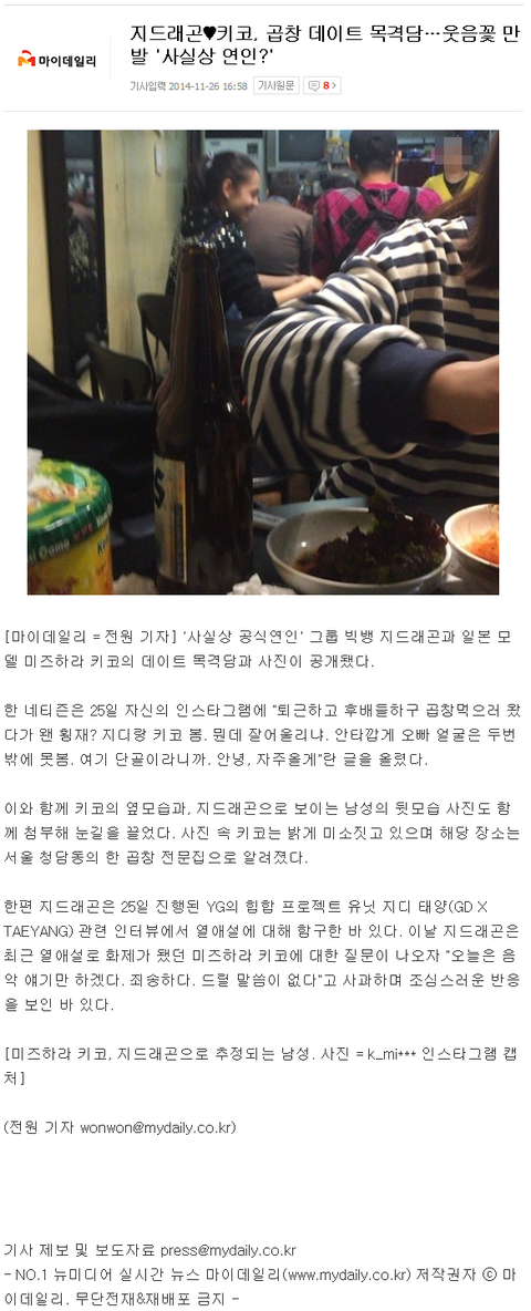 지ㄷㄹㄱ-키ko, 곱창 데이트 목격담
