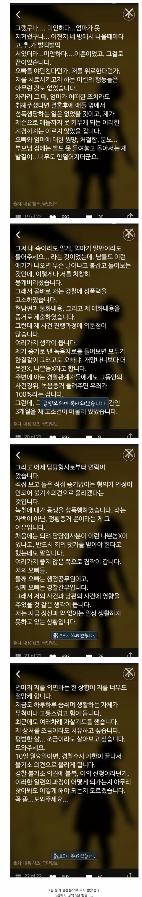 정말 이런글 보면 세상은 넓고 또라이들은 많다는 생각밖에 안든다 진짜ㅋㅋㅋㅋ지 가운데다리 컨트롤 못하는애들은 잘라줘야됨 ㅇㅇ 진짜 그수밖에없음 저거는 완전 싸이코패스야.. 그리고 우리나라는 이미 범죄자들의 나라라 범죄인정되고 감방에 처넣어도 금방 기어나올거라 답도없어... 이민이 답