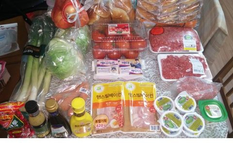 이마트 : 모닝빵, 파, 양파, 당근, 양상추, 머스타드소스, 케찹, 바베큐소스, 베이컨, 치즈, 피클