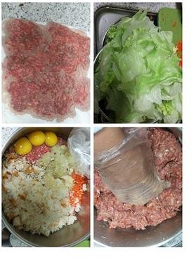 고기 핏물빼고 양상추 손질, 그리고 손질한 재료들은 섞어줍니다..