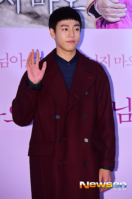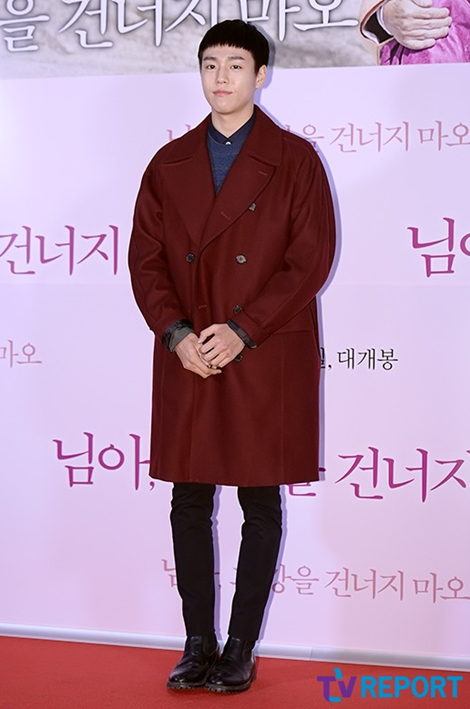 시사회에서도 두둔 오버핏 코트에 블루니트입고