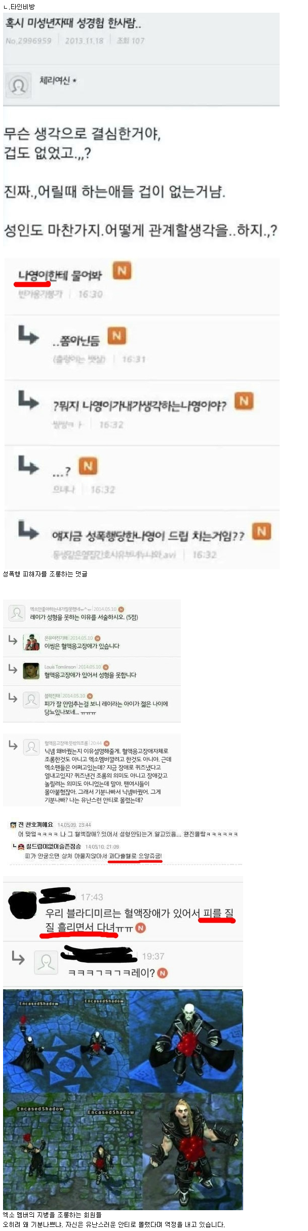 그들의 주장대로 이 많은 캡쳐본들이 소수의 소행이라면 운영진이나 다른 회원에 의해 제지당하여 자정이 이루어졌어야 합니다.