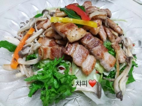 다이어트 하려고 샐러드 사왔는데 고기가 보이넹