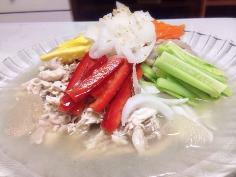 닭가슴살 쭉쭉 찢어 칼국수 만들어 먹으면
