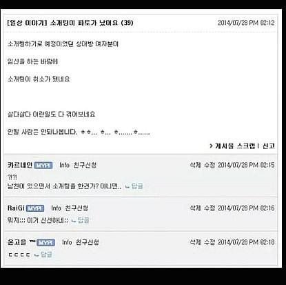 소개팅이 파토난 이유 갑 오프 갑