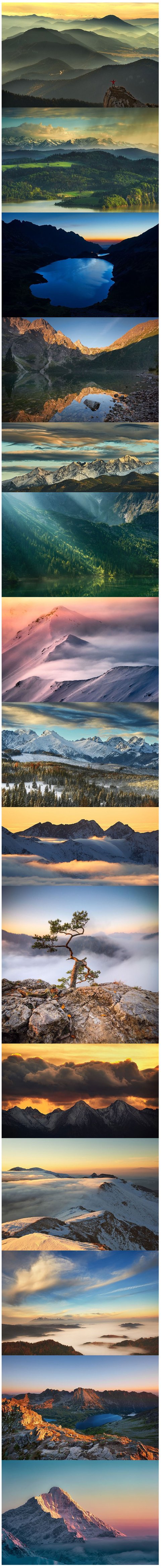 일몰 후 몇분을 더 기다린다. 아래 사진은 Tatra산과 Pieniny산을 중심으로 Marcin Kesek이 촬영한 사진들이다.