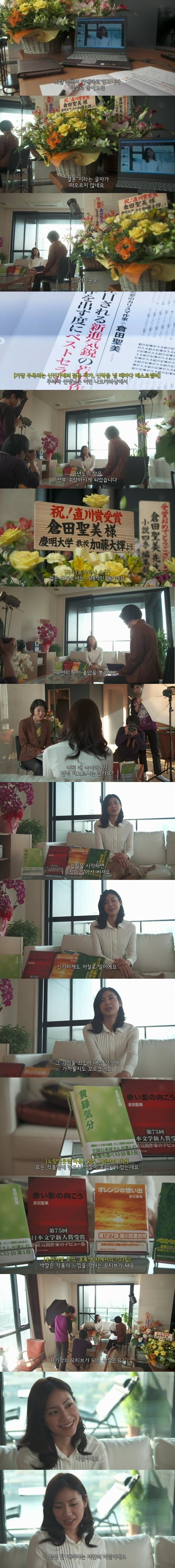 여주의 직업은 소설가로 유명한 상을 받아서 인터뷰를 진행함.