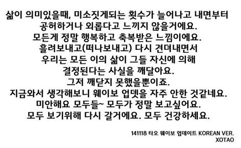 타오가 요즘 유난히도 그리워 할때가 있는데 그건 비어 나간 자리를 그리워 하는게 아니라 정말 즐겁게 놀았던 그때를 그리워 하고