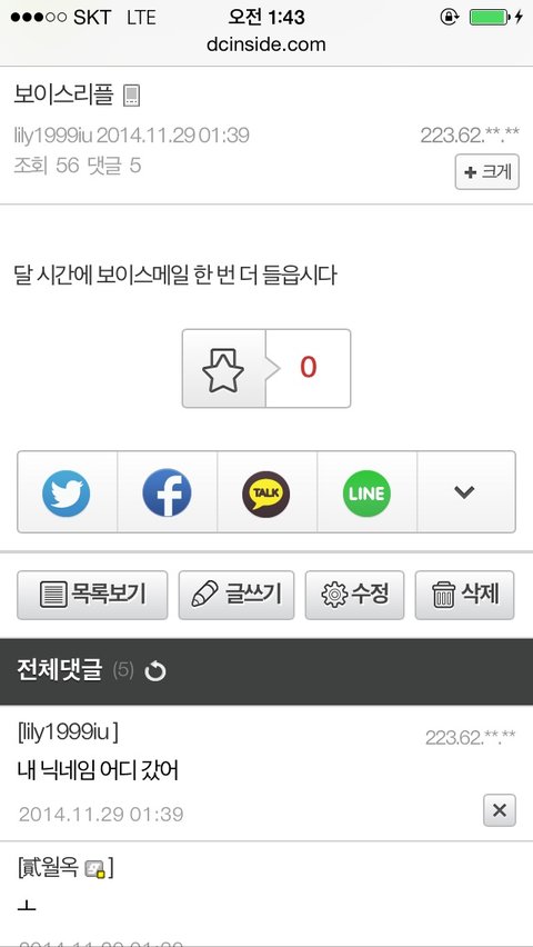 새벽에 아이유 보이스리플 엄청 달고 갔음 ㅎㄷㄷ