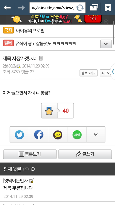 얼마전에 고정닉 파고 최근에 또다시온 아이유!