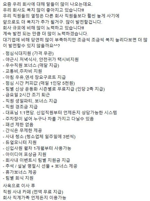 신생업체 스베누의 복지