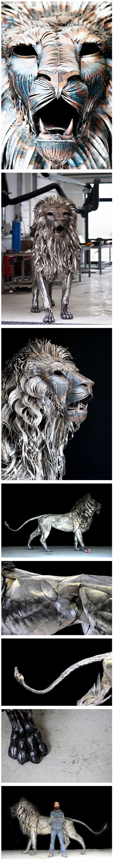 고철 4000 조각으로 만든 사자