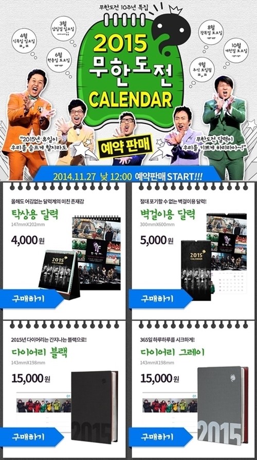 이번 연말에 역시나 무한도전 달력과 다이어리도 나왔던데!