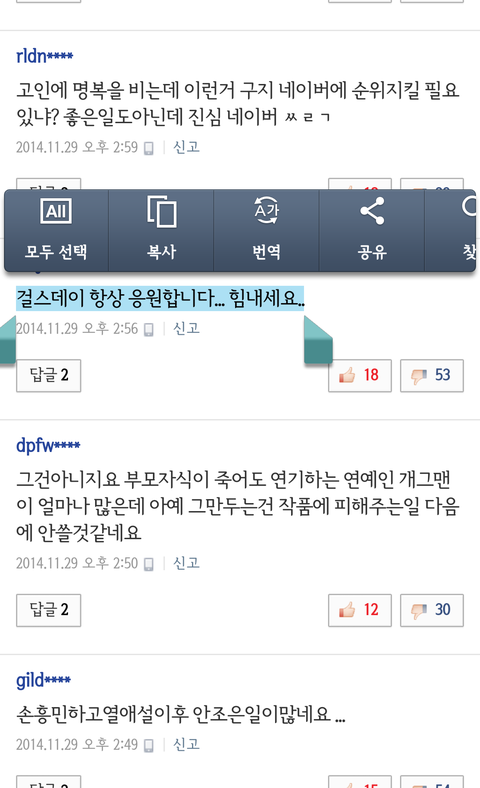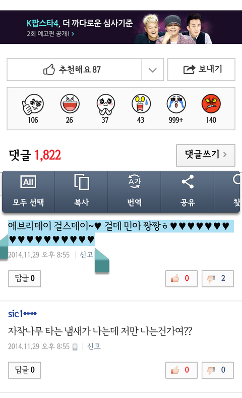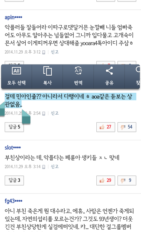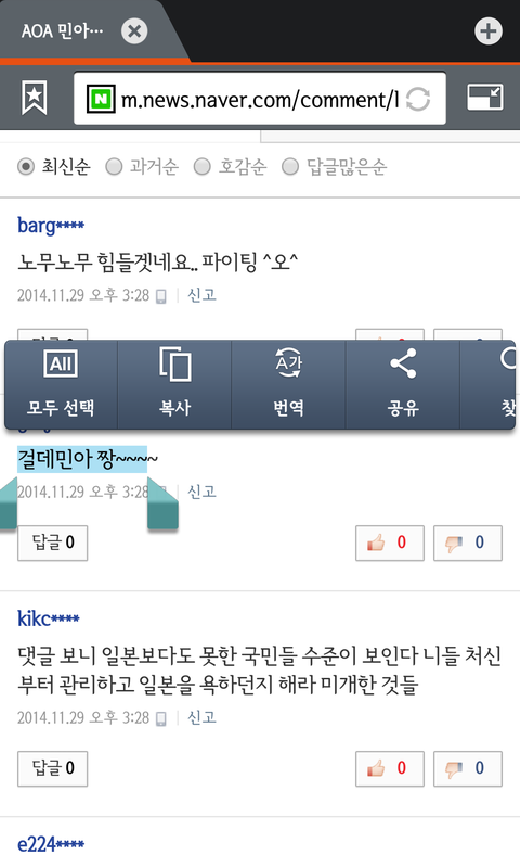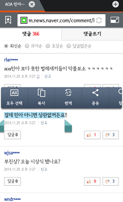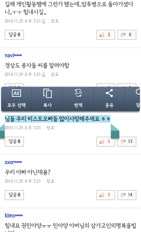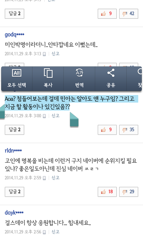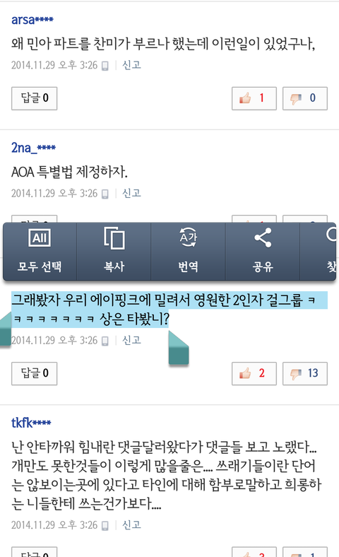 에이핑크,걸스데이,비스트 팬 분들 팬코라는거 알고있지만 에이오에이 팬 입장에서 이런 댓글 하나하나가 마음에 상처로 남습니다.