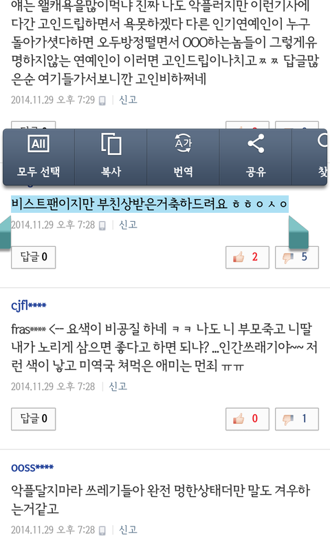 저 중 몇 몇은 댓글 모음을 봤는데 실제 저 그룹 팬인 경우도 있고요.