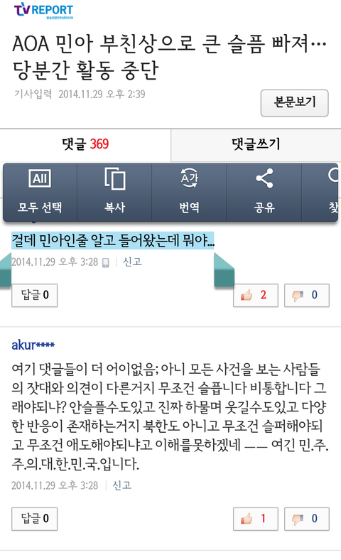 AOA민아양 힘내시고, 고인의 명복을 빕니다