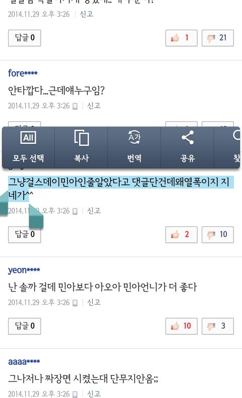 민아양이 혹시라도 저 댓글을 볼까봐 겁나네요.