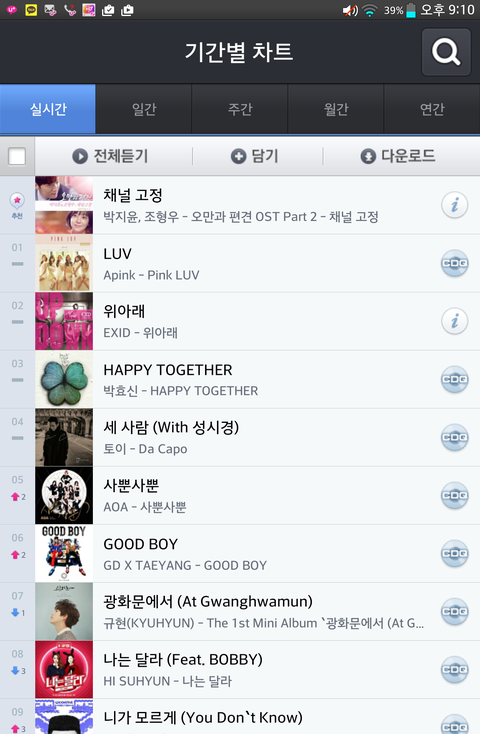 난 원래첨 나왔을때부터 위아래 저노래 좋다고생각해서 반복재생했었는데 인기없다가 갑자기 순위올라와서 깜놀;;;
