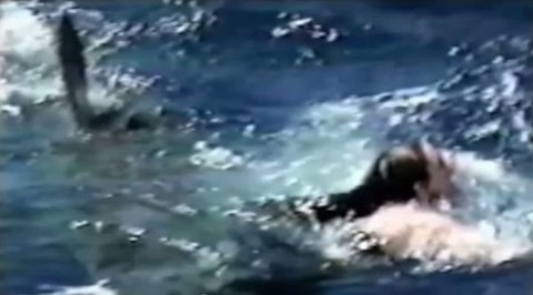 갑자기 나타난 백상아리의 공격에 다리를 물린 뒤 바다 속으로 끌려들어갔다