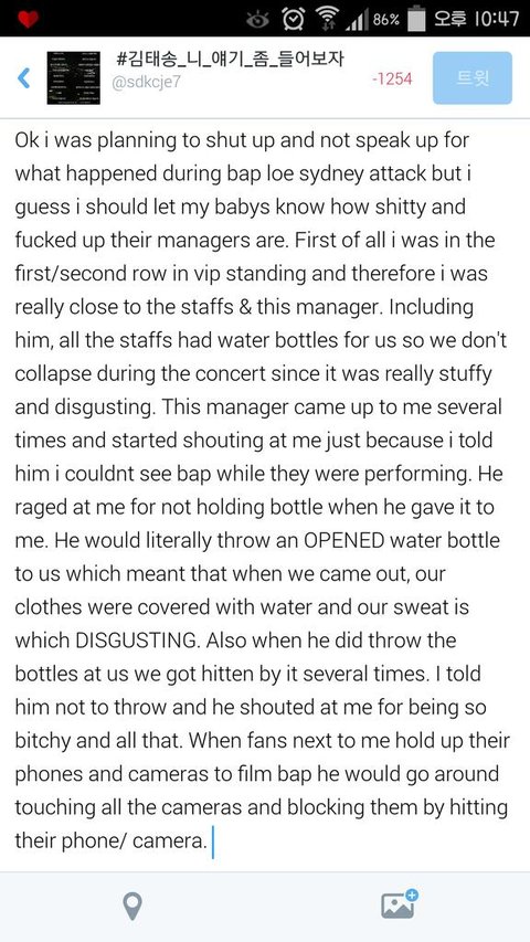 싱가폴콘째 앞자리서 알짱대서 멤버들 잘안보여서 좀 비켜달라그랬더니 안비키고 소리지르고