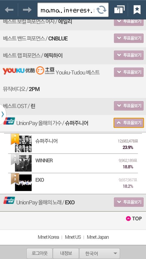 엑소 엠넷마마 투표 좀 하자ㅜㅜㅜㅜㅠ
