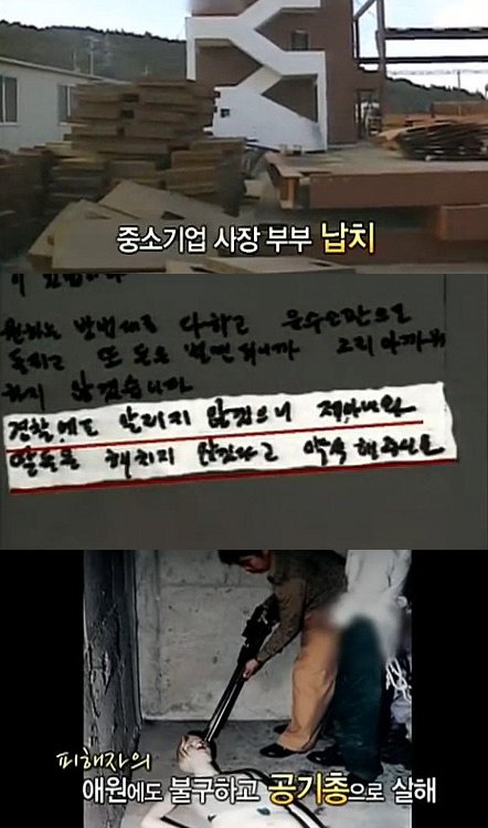 # 네 번째 범행 중소기업을 운영하던 부부가 성묘 후 귀가길에 납치됨 몸값 8,000만 원을 받고 증거인멸을 위해 잔혹하게 살해 후 소각함
