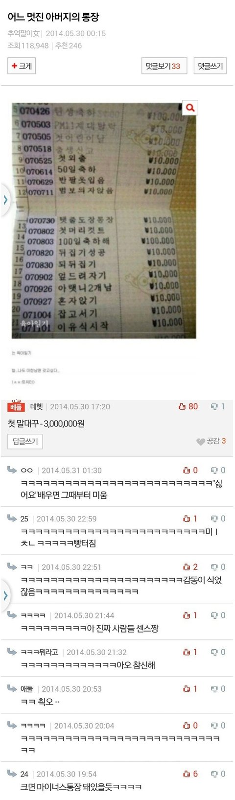 어느 멋진 아버지의 통장