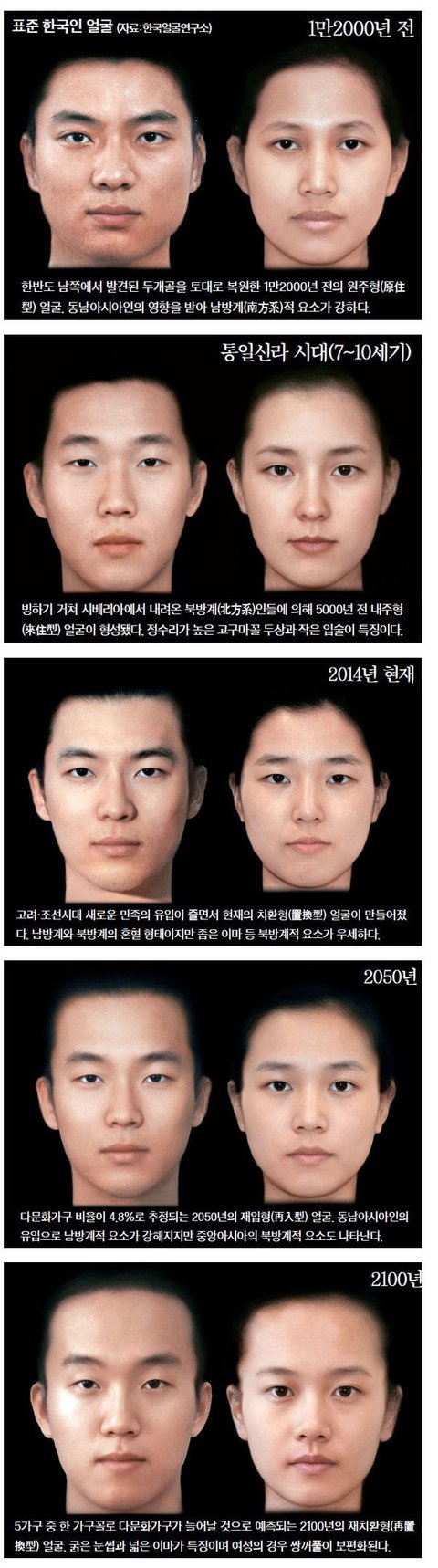 우리나라 남여 시대별 얼굴 변화