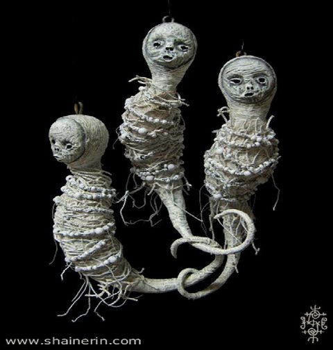 아래사진은 그녀가 만든 작품중 일부입니다. 확실히 기괴한 인형들인것 같군요.