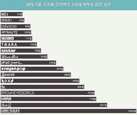 여자걸그룹 공중파 음악방송 1위하기까지 걸린 시간